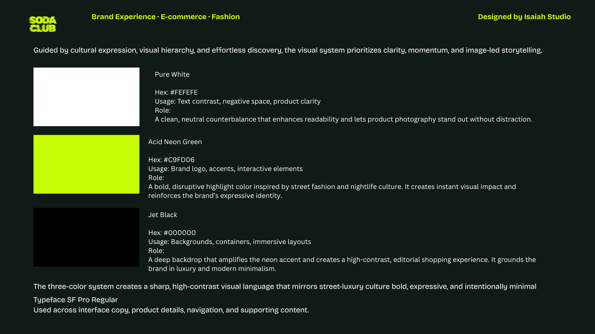 Soda Club reimagines street fashion shopping as a fast, image forward experience that prioritizes momentum over complexity. By balancing editorial storytelling with clear structure, the project demonstrates how culture and commerce can coexist without slowing discovery.