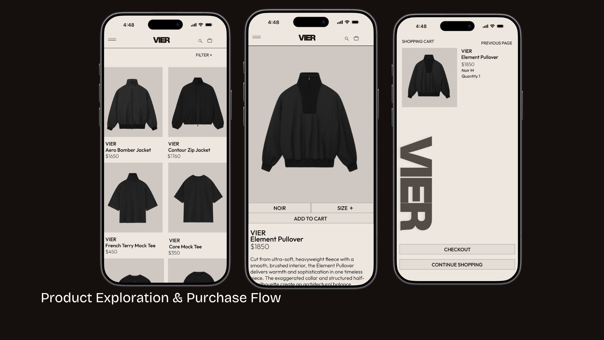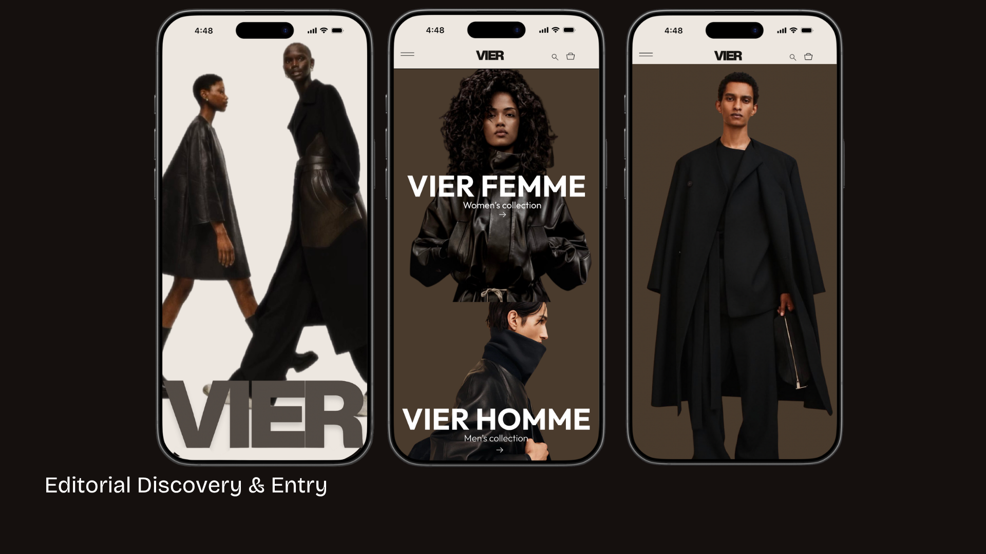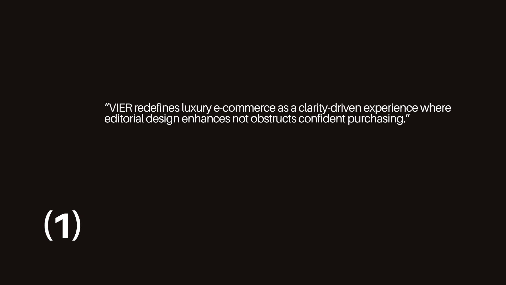 VIER redefines luxury e-commerce as a clarity-first experience where editorial design enhances—not obstructs—confident purchasing. Designed to remove friction from discovery to checkout, it transforms passive browsing into intentional decision-making through structured navigation, product-first hierarchy, and guided interaction. By balancing aesthetic refinement with functional clarity, the experience strengthens trust, accelerates conversion, and elevates the overall perception of luxury.