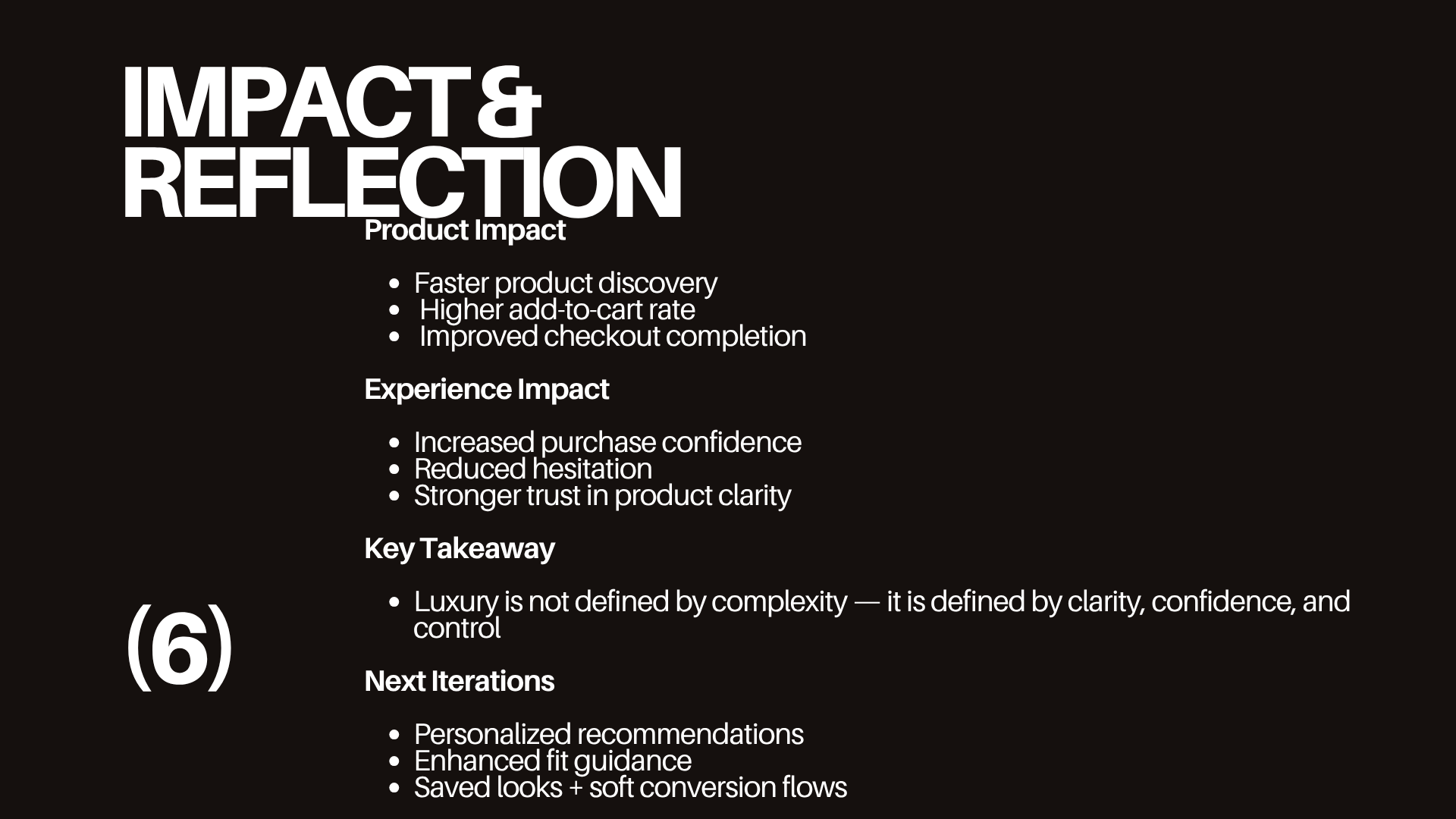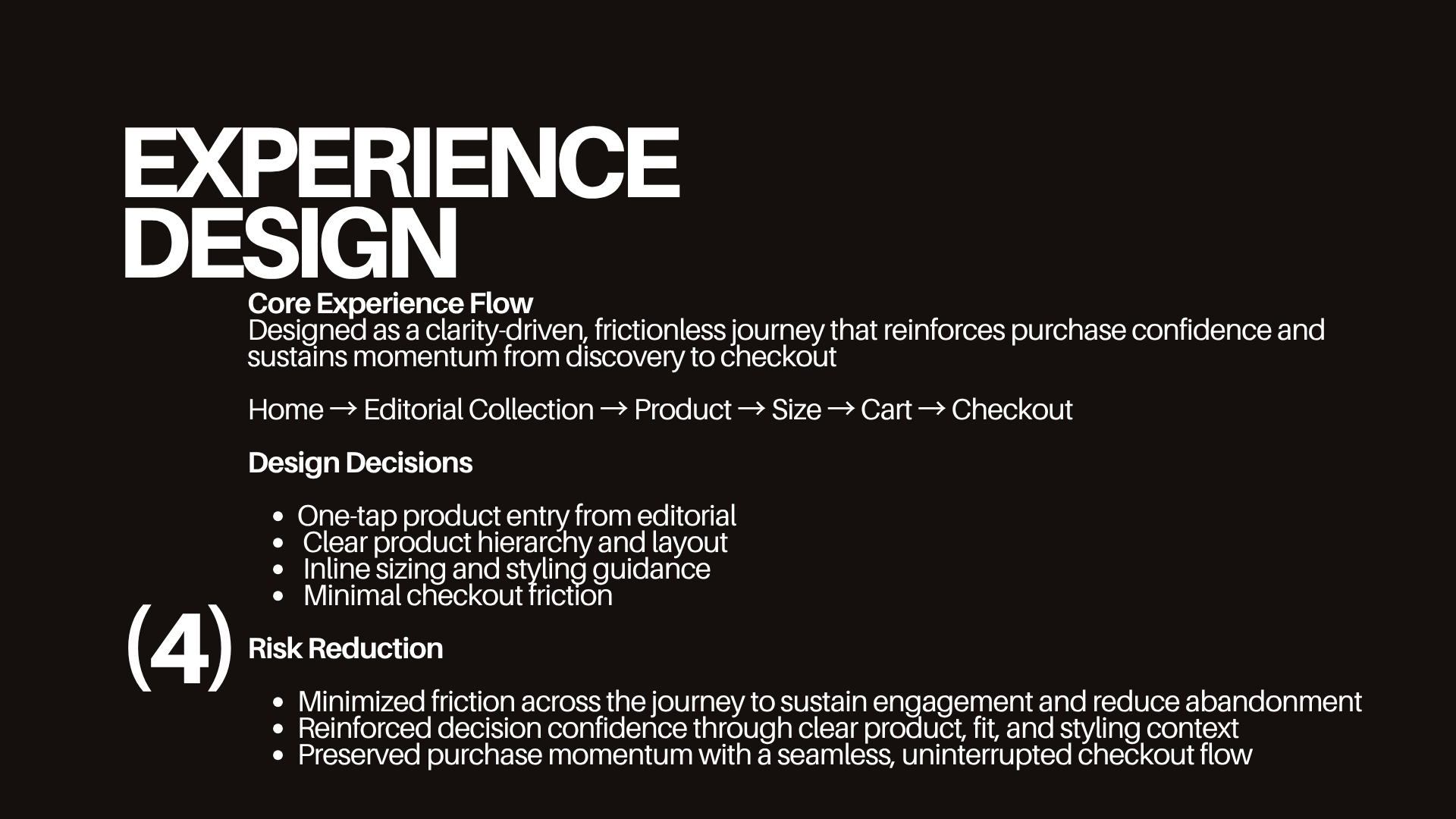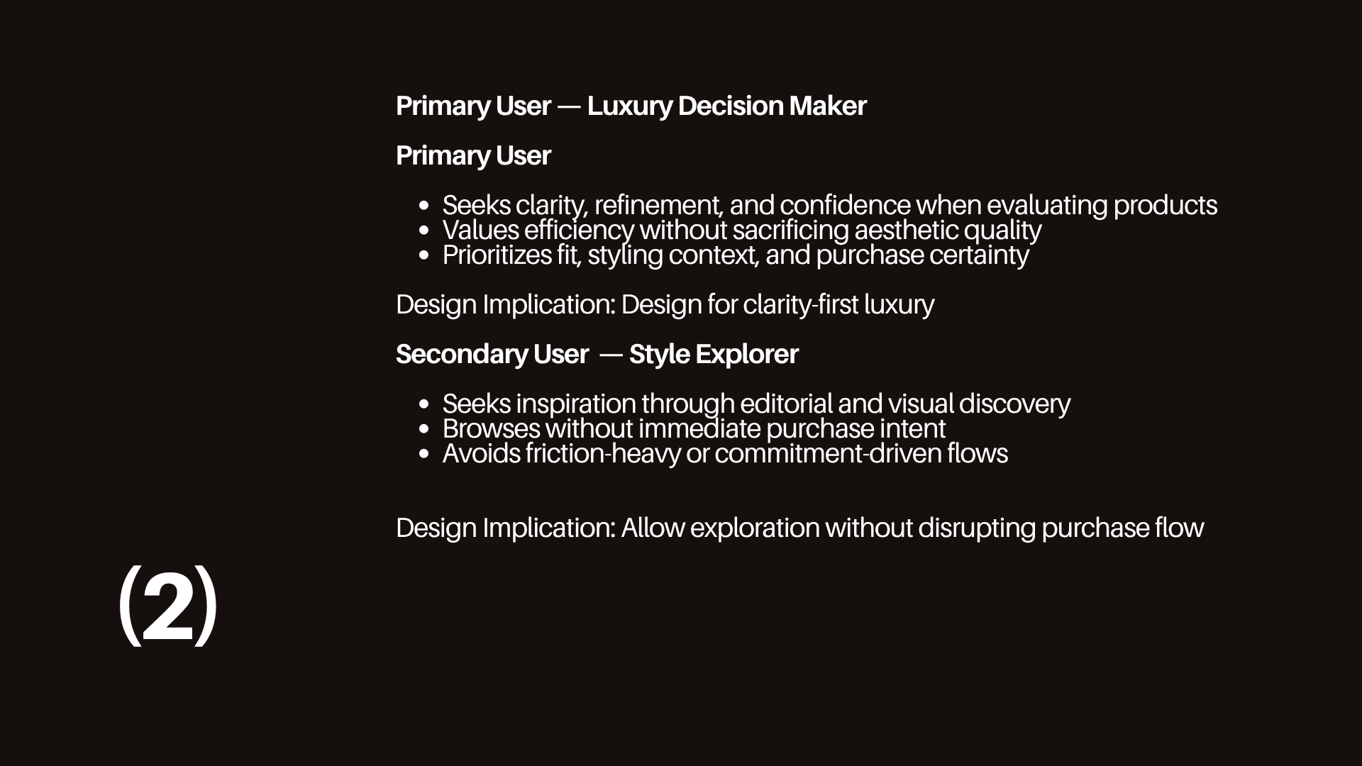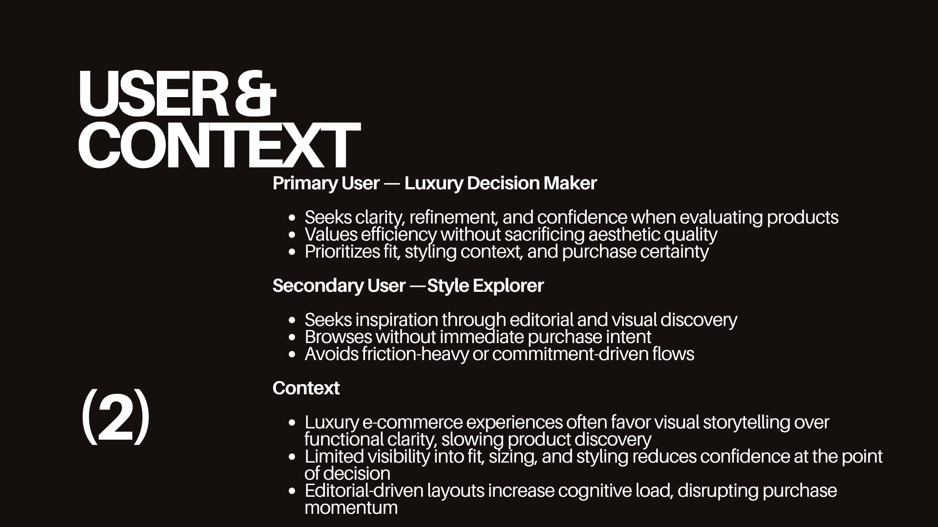 VIER redefines luxury e-commerce as a clarity-first experience where editorial design enhances—not obstructs—confident purchasing. Designed to remove friction from discovery to checkout, it transforms passive browsing into intentional decision-making through structured navigation, product-first hierarchy, and guided interaction. By balancing aesthetic refinement with functional clarity, the experience strengthens trust, accelerates conversion, and elevates the overall perception of luxury.