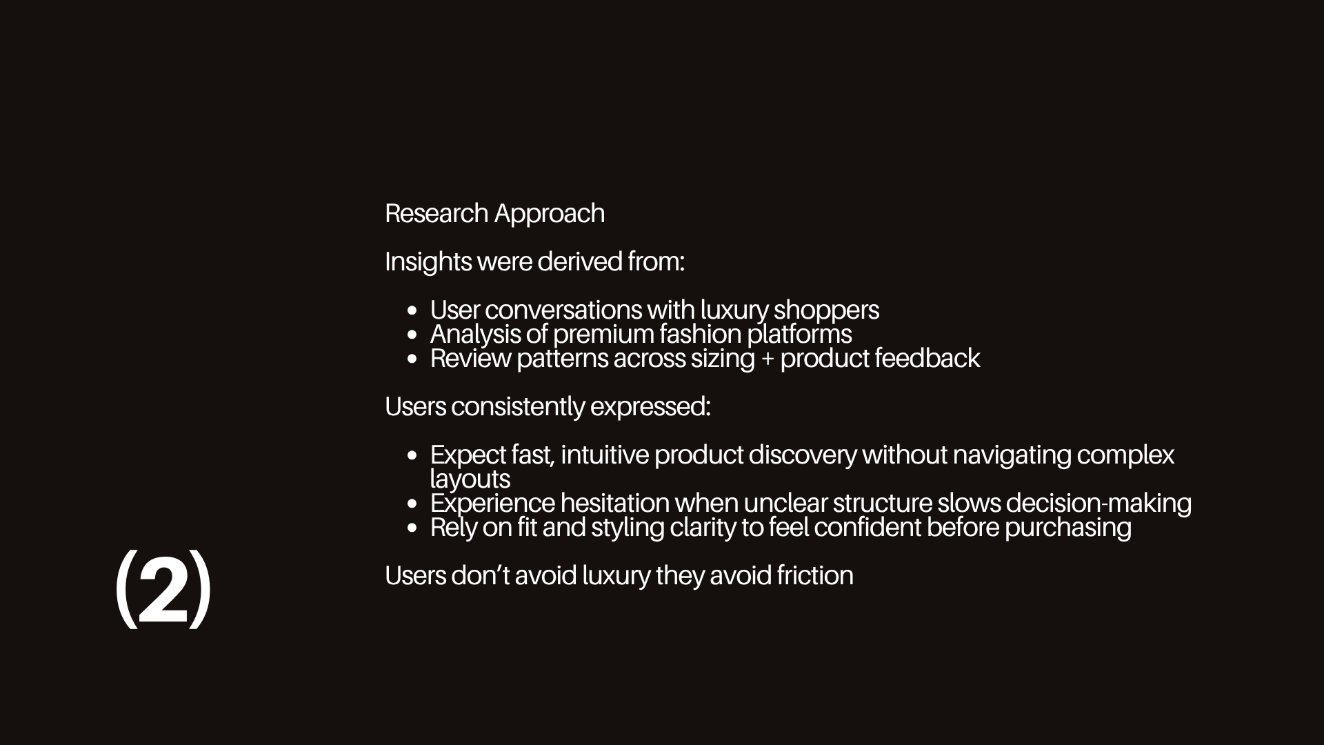 Includes: Research synthesis · Behavioral insights · User journey mapping · Information architecture · Interaction design · Visual system · Trade-offs & constraints · Impact metrics · Interactive prototype